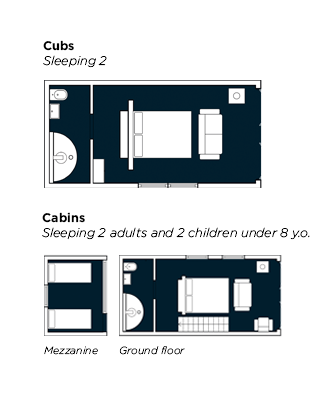 Leopard Creek is a lavish retreat from the outside world where your neighbours are a pair of majestic Amur leopards. Each Cub comes individually designed with a king bed, wood burning stove, oak floorboards (with underfloor heating), and ensuite shower room stocked with organic Bamford toiletries. Above the bed is an overd skylight for stargazing, whilst glazed bifold doors at the front of the hut open fully onto a private outdoor seating area complete with fire-pit, perfect for that evening sun-downer.